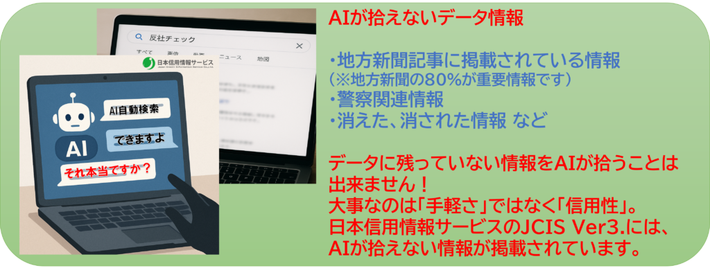 日本信用情報サービス「JCIS WEB DB Ver.3」と他社「反社チェック」との3つの違い